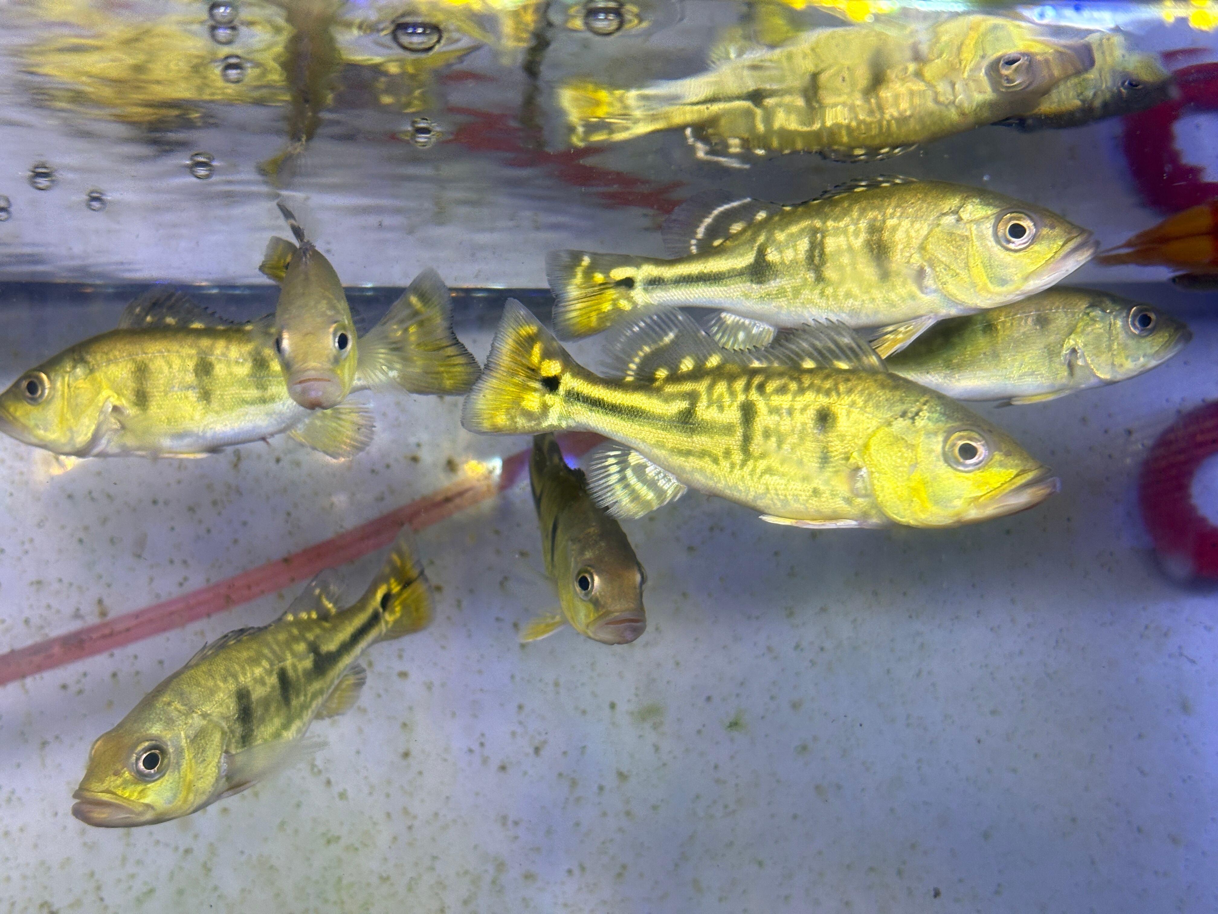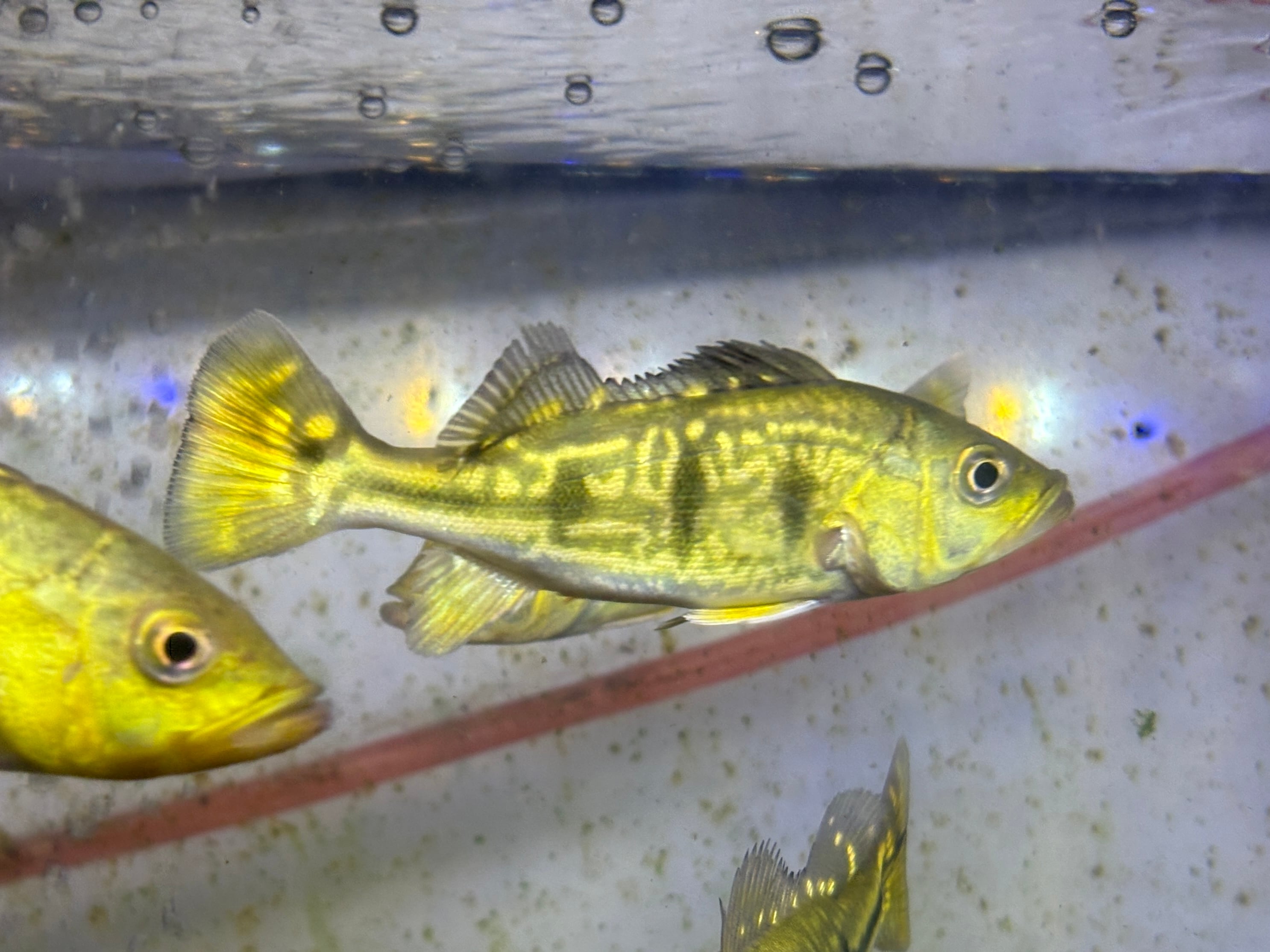 黒いスポット模様が蜘蛛の巣のように広がる独特の体色が特徴で、水槽内でも圧倒的な存在感を放ちます。飼い込むことで金色の体色と黒い模様のコントラストがさらに際立ち、成長とともにその魅力を増していきます。