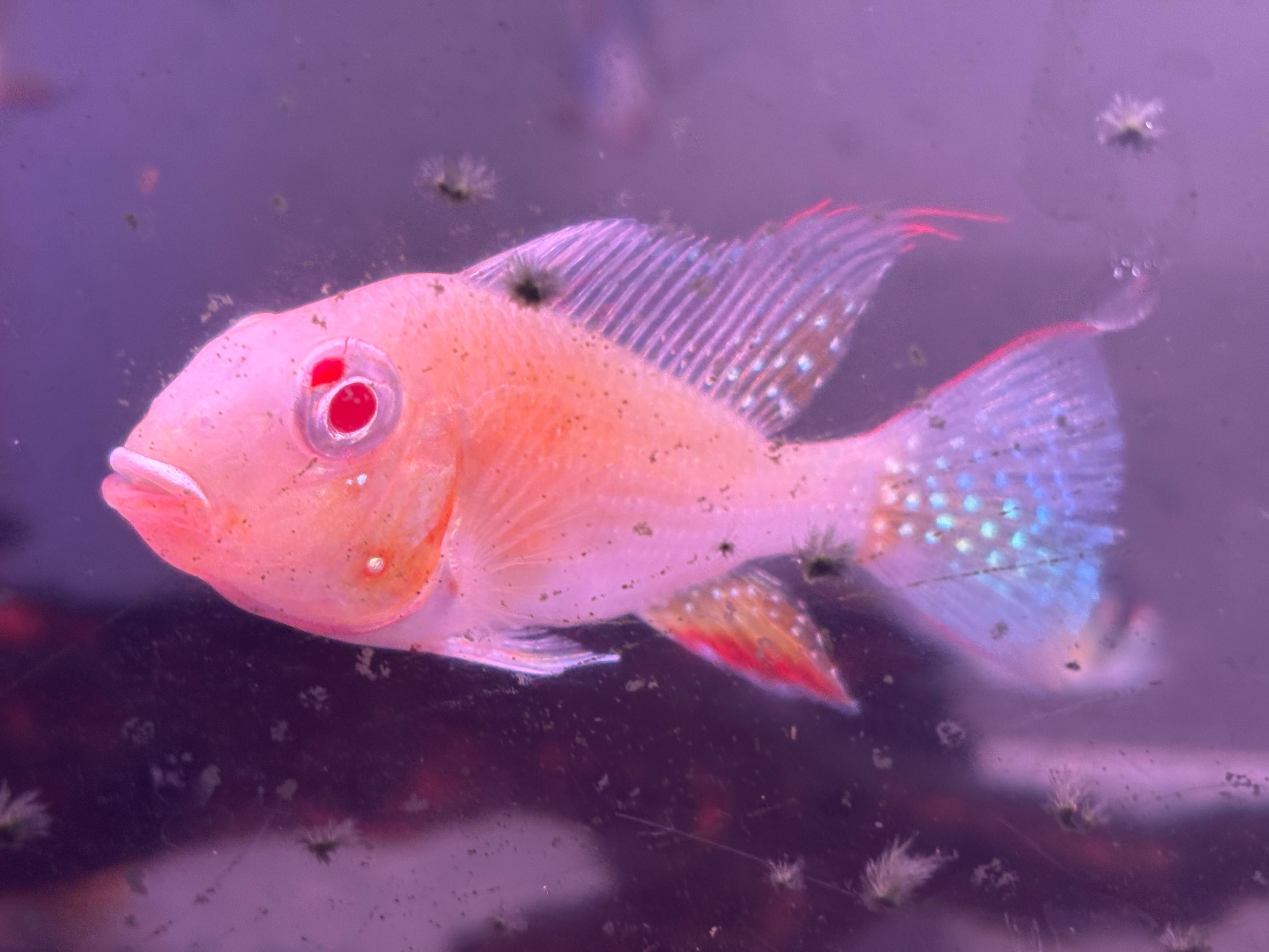 南米原産の人気中型シクリッド「アカリクティス・ヘッケリー」のアルビノ個体です。